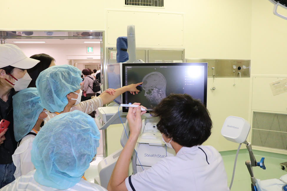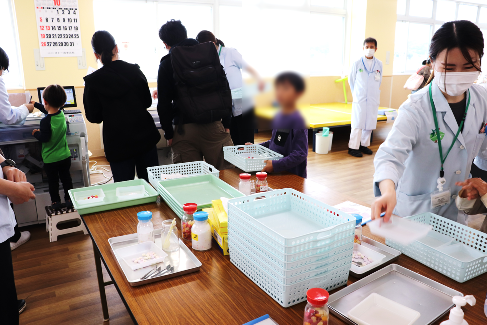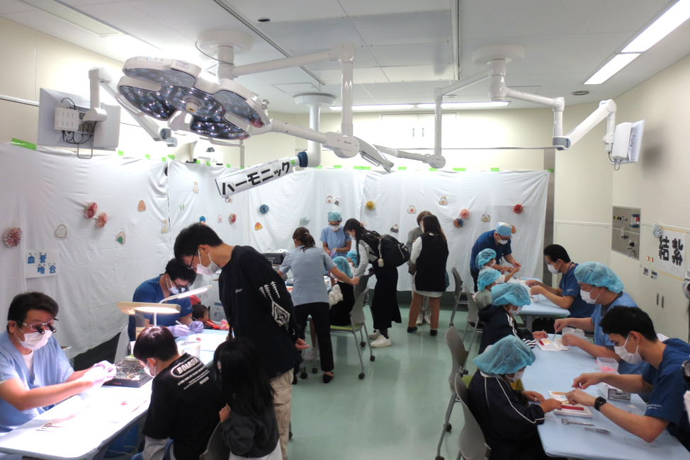 上階では、手術室体験、調剤体験、赤ちゃんの入浴体験など、こどもから大人まで楽しめる体験型企画を多数実施し、どの会場も終日多くの方で賑わいました。午後からは市民公開講座として、麻酔や大腸内視鏡について分かりやすい解説が行われ、学びの時間にもなりました。