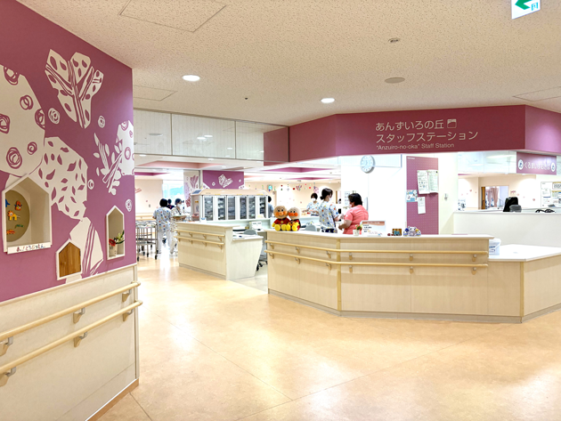 患者さんの多くはベット上での生活を余儀なくされた方が多く、人工呼吸器や経管栄養を行いながら入院生活を送られています。患者さんにとってあんずいろの丘病棟は、治療と生活の場を兼ね備えてた所です。私達は患者さんが「うれしい・楽しい・気持ちがいい」と感じていただくために、快適な環境を提供しつつ、病棟内での季節に応じたお楽しみ会やお誕生日会、車椅子での散歩や外出、バスを利用しての遠足などに取り組んでいます。また、食事やおやつは入院生活での楽しい時間。楽しくまた安らぎの雰囲気つくりに音楽を流しながら援助を行っています。患者さんひとりひとりが生きがいを持って入院生活が送れるように、患者さんの思いに寄り添う看護を目指します。